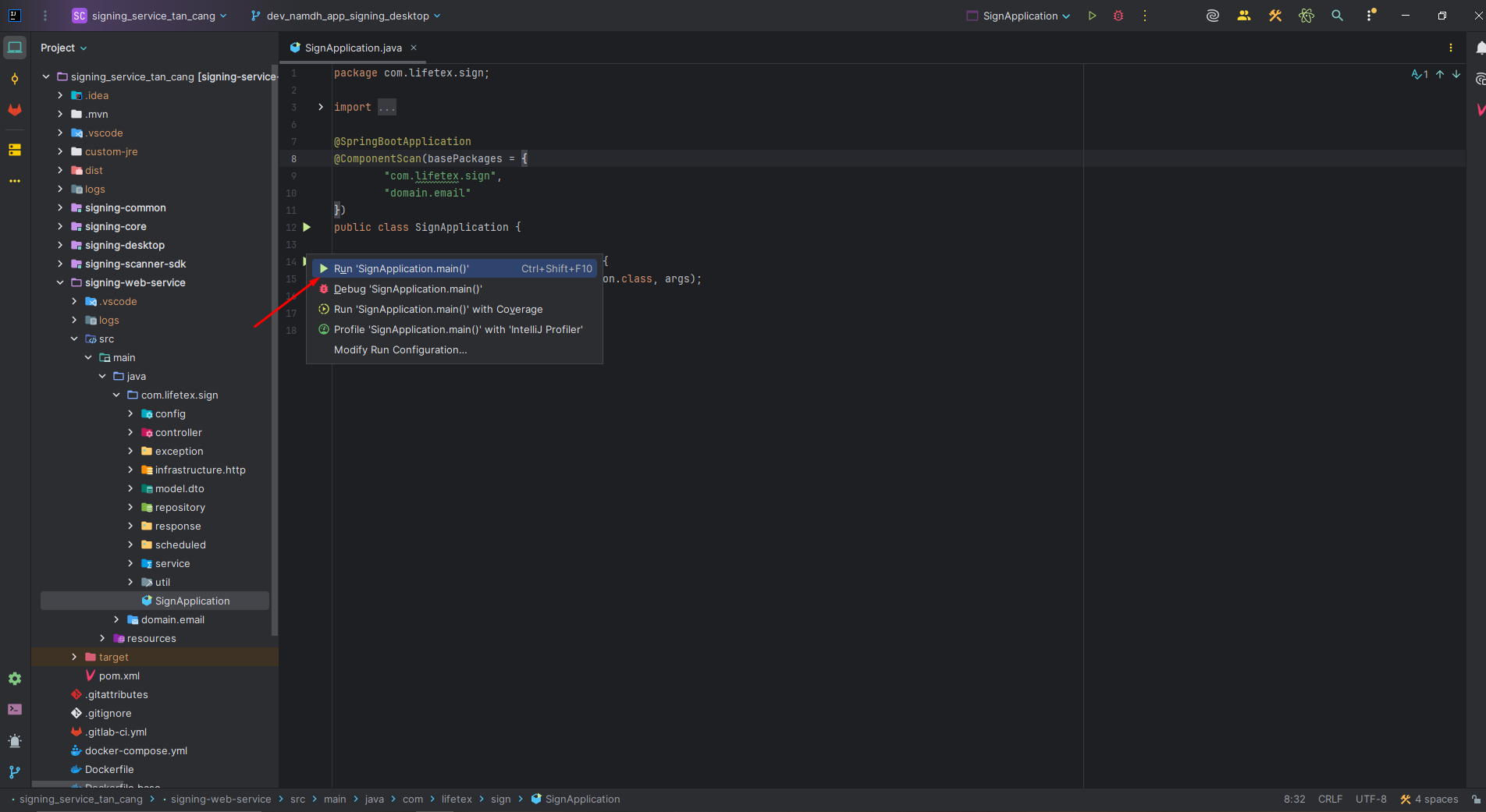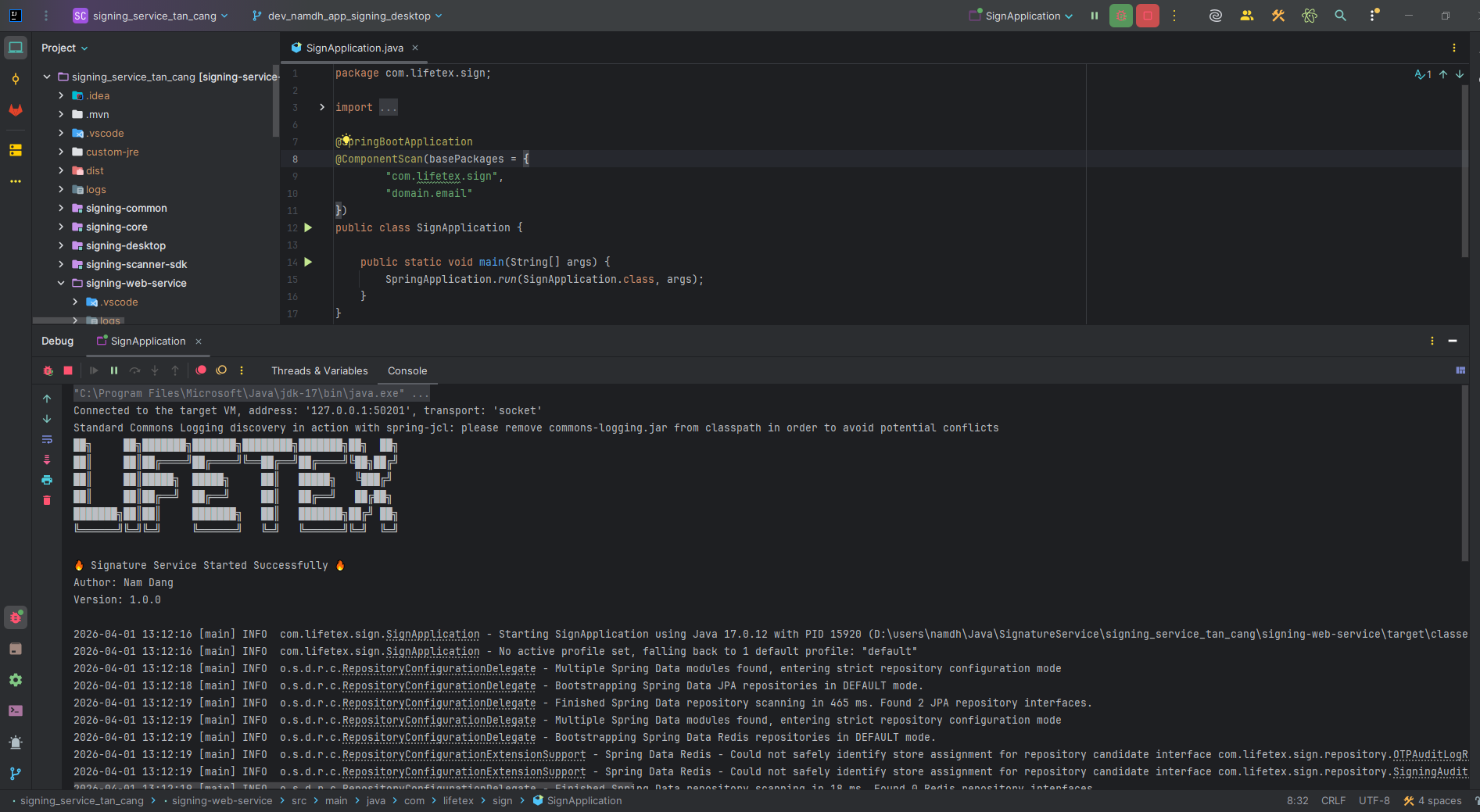 SigningWebServiceApplication.javavà thiết lập Run Configuration.