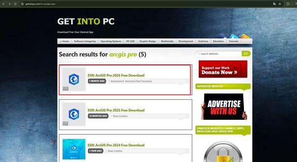 - Download ArcgisPro tại https://getintopc.com/?s=arcgis+pro và chọn version ArcgisPro 2026