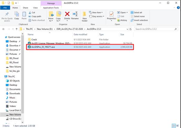 - Sau khi cài đặt xong ta chưa sử dụng được ngay mà còn phải crack nữa mới sử dụng được. Trong mục ArcgisPro 3.5.3 có thư mục Crack
