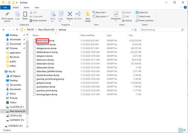 Các dữ liệu khác thay 2 tên này bằng tên như ở trong file trước .dump ở file drive đã gửi