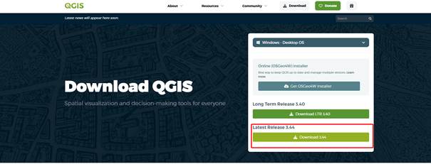 + Download ở địa chỉ https://qgis.org/download/ và chọn phiên bản 3.44