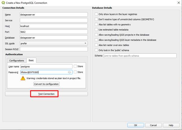 + Điền các thông tin kết nối và ấn Test Connection, rồi ấn OK