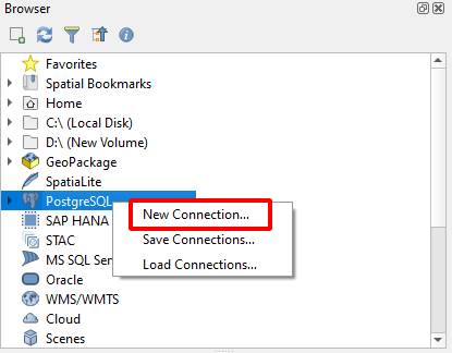 + Chuột phải vào Postgresql , trong Browser chọn New Connection