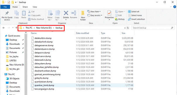 Các dữ liệu khác thay 2 tên này bằng tên như ở trong file trước .dump ở file drive đã gửi