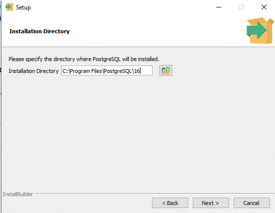 - Thực hiện cài đặt, cài đặt PostgreSQL 16.x, vị trí đặt file giải nén, sau đó next tiếp