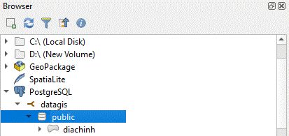 - Import dữ liệu vào database thông qua QGIS