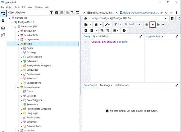 1. Cài đặt PostgreSQL 16 và kích hoạt tiện ích mở rộng PostGIS để hỗ trợ dữ liệu không gian.