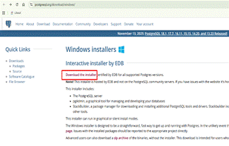 - Download PostgreSQL tại https://www.postgresql.org/download/windows/ và chọn version Postgresql 16.x