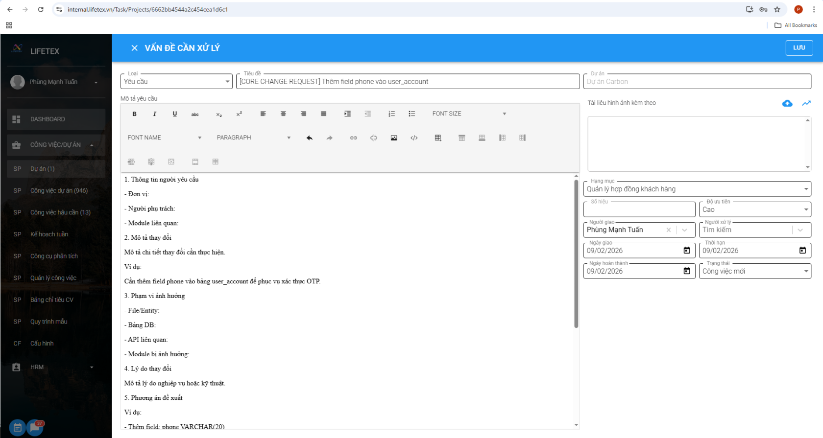 [CORE CHANGE REQUEST] Thêm field phone vào user_account